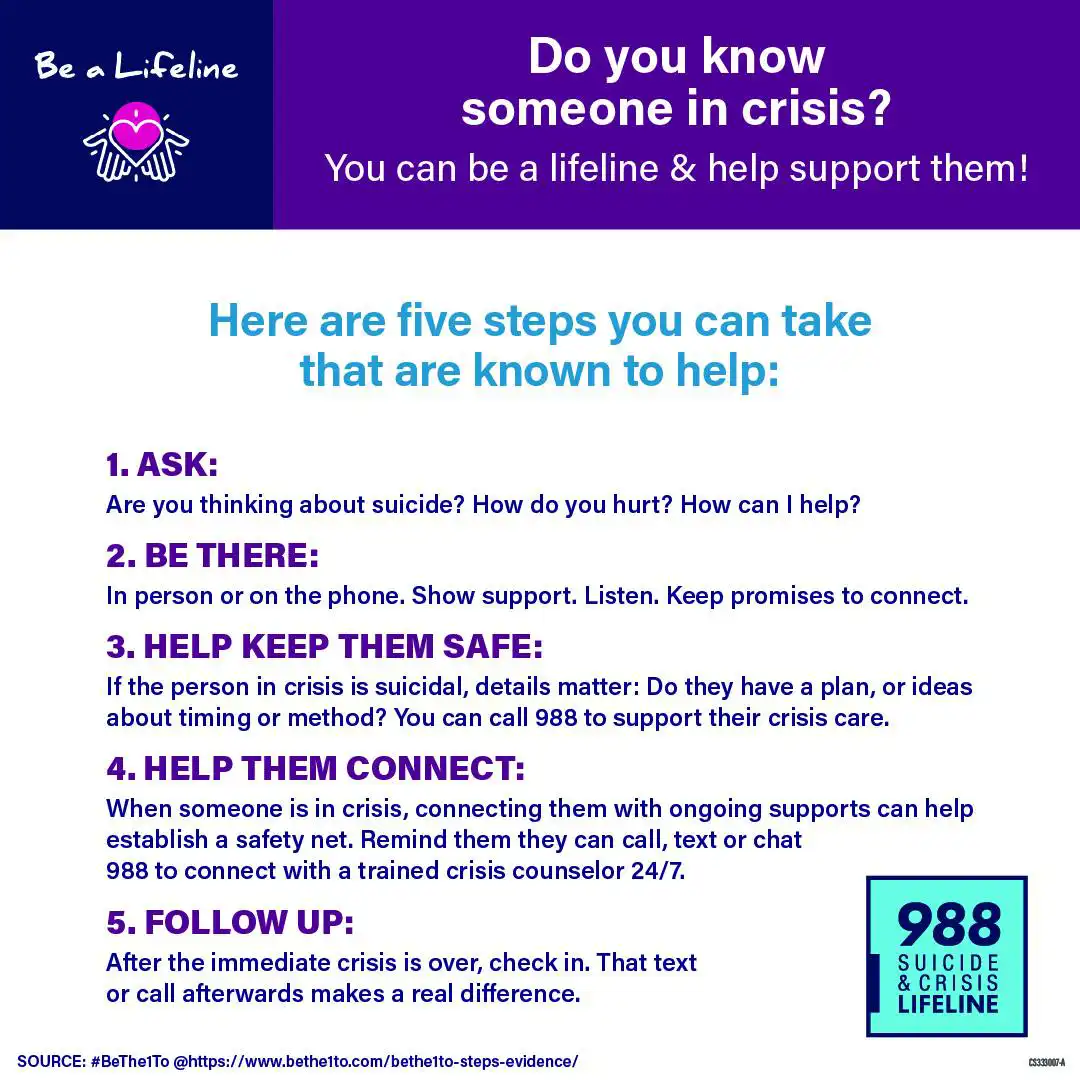 - Connect with mental health crisis services through a call, text or online chat by calling 988 Lifeline – If you need emotional support, reach out to the national mental health hotline: 988.